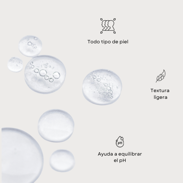 Tonifica. Tensa los poros, hidrata la piel y equilibra el pH.
