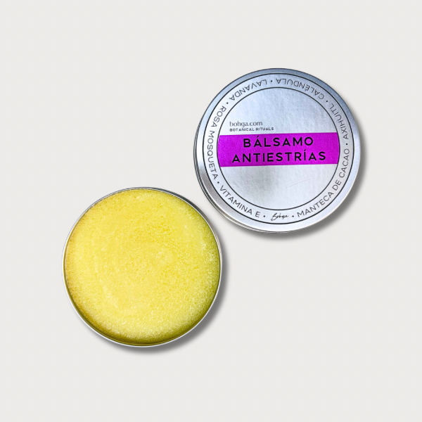 Ayuda a reducir y prevenir la aparición de estrías, estimulando la producción de colágeno y elastina en la piel. Promueve la firmeza y elasticidad mientras hidrata y nutre profundamente.