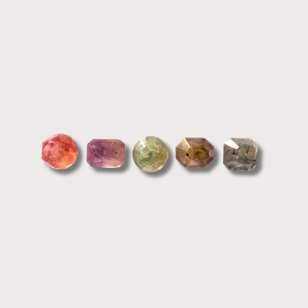 INCLUYE: 6 jabones de 20 g c/u. - 1 Jabón con cuarzo blanco (ALEGRÍA)