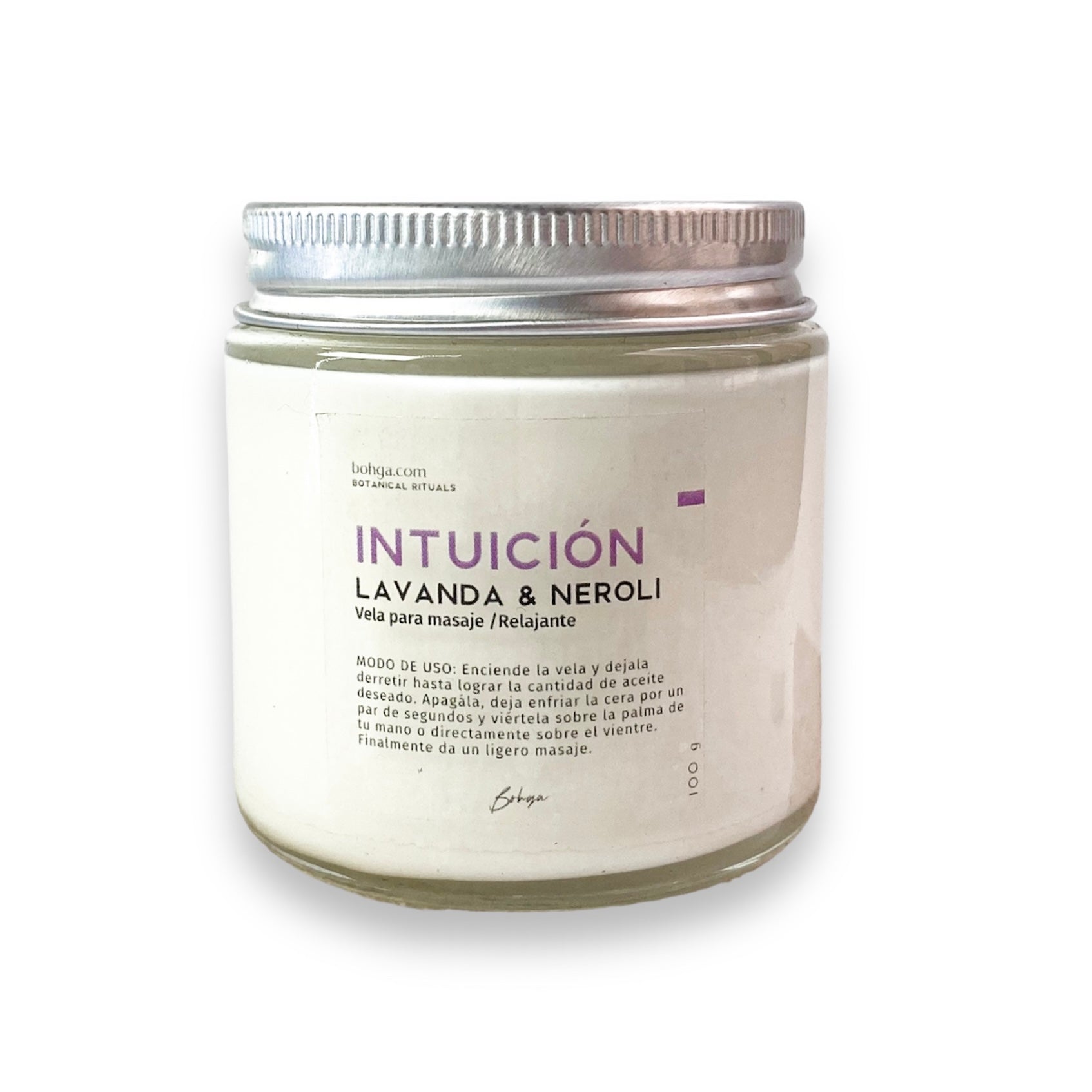 La vela tiene doble propósito, se prende como una vela normal pero al derretirse se va formando un aceite que se puede utilizar para dar masaje o simplemente para hidratar y perfumar la piel.